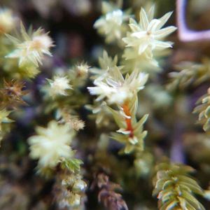 苔をマクロレンズで覗いたら、 小さな赤い羽虫が❗ どちらさん❓️ この虫の名前わかる方、ぜひ、教えて下さい🙏 あ、苔の前も。