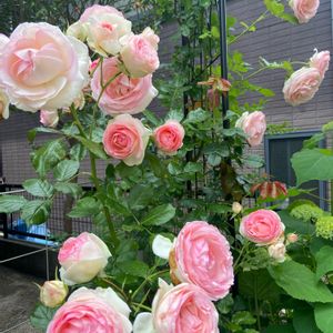 昨日のアマンディンシャネルの反対側から誘引してる フランソワジュランビルも満開になりました🌹✨ 柔らかでふわふわの薔薇がたくさん 枝垂れるように咲く姿も可愛いです 一季咲きの薔薇は勢いが違いますね *ೄ*🌹٭:*ೄ*🌹٭ೄ*🌹* ೄ*🌹٭:*:.。..