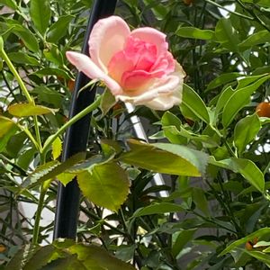 アーチに誘引したローズドゥグランヴィルさん。とっても可愛らしく咲いてくれました。ステムが少し長めで花が垂れ下がるのでアーチに誘引して正解でした!