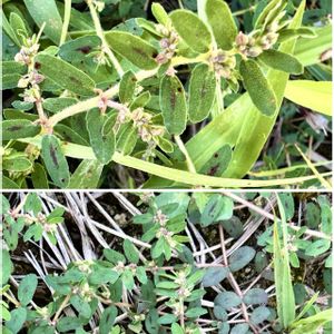きつい直射日光でカラカラに乾いた空き地に広がっているのはトウダイグサ科ニシキソウ属(トウダイグサ属とされることも)ですけど、地面を這うのはハイニシキソウ、コニシキソウ、アレチニシキソウ等々色々ありますが、葉の斑紋や茎の毛の有無から、ニシキソウでいいのだはないかと思います🤔
