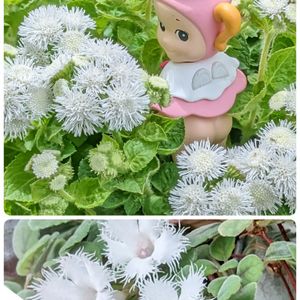 最近お迎えしたアゲラタム アーティストホワイトの中の、ティーポット のソニエンくん、オチリも可愛いくて 白いお花がお似合いだね😋💓 ふわふわしたお花も可愛いよね〜 (*ฅ́˘ฅ̀*)ꔛ︎︎︎︎💖 下のアルソビアのお花もひらひらして 今年はたくさん咲きそうです😃 今、葉も伸びて1m位あるから、なんとかしなきゃですね(´▽`) '` '` '`💕 🏷オケツの日 🏷白い水曜日に参加します〜🙂