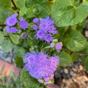 アゲラタム 見切り品箱の中にあったんだっけ それとも鳥さんかなあ 何で咲いてきたのか全く分からないけど 咲いてくれてサンキュー😆💕