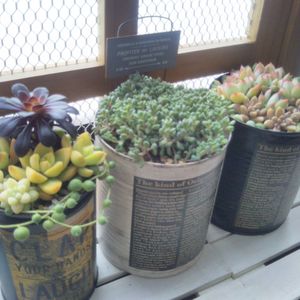 昨日、黒法師の寄せ植えと同時に、お迎えセダムと、以前pic.したぎゅうぎゅうになりすぎた姫秋麗丼とプレリンゼ丼から間引いた子のリメ缶への植え付けもしました。 昨日の黒法師の寄せ植えにはさらにビアポップを追加しています。 お迎えしたセダムは、札にはセダムとの表記。見た目はパープルヘイズに似ていますが、この時期パープルヘイズでこんな緑のままってことはない❓ でも緑でもかわいいので🆗です😄 「姫秋麗リメ缶寄せ」「プレリンゼリメ缶寄せ」タグで、ぎゅうぎゅうになった姫秋麗、プレリンゼのpic.も見られます!