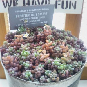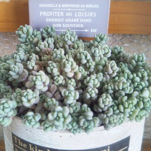 「セダム」という札で売られていた子。 もりもりと可愛くなってきました💕 青白いつぶつぶが白いリメ缶にぴったりでお気に入り😊 玄関を通るたびに手のひらでそっとなぞっちゃいます(*^_^*) セダムの種類に詳しくないのですが、お名前わかる方みえますか?