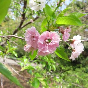今日のお花 フユザクラ(冬桜) 別名 コバザクラ(小葉桜) 春と秋(10月〜12月)に2度咲き、春の花は大き目 5枚目はコブクザクラ(子福桜) 春と秋に八重の花を咲かせ、一つの花に2本以上の雌しべが付き花後、1つの柄に数個の実が付くことから、子宝に恵まれる様子に見立てて子福桜と言われる。