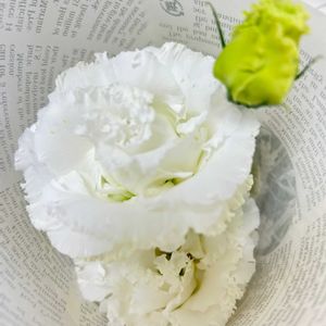 //December 13, 2024// 所用があって、ホワイトの トルコキキョウを 購入しました 八重咲が、ゴージャス(笑) 冬の白は、映えますね♪ ツボミが、ミントグリーンなのも 素敵な色合いです