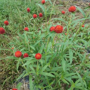 今年はオレンジの千日紅を植えました これは昨年のこぼれ種からの千日紅です 赤の方が好きかも…
