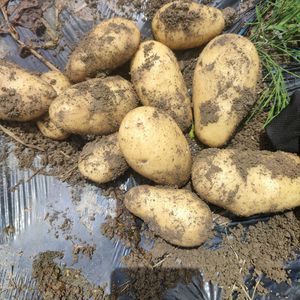 芽が出ていたジャガイモを植えました 1本でたくさんあるやん!と思って何本か掘りましたが、結局小さくて少なかったです