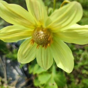 ピンボケしてますが、黄色も咲いたことを残しておきましょう ダリア