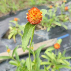 昨年は赤色、今年は、オレンジの千日紅にしました