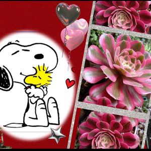 ✨ピンクウィッチ アエオニウム わが家で〜1番元気で可愛い〜😍🎶⤴️ スヌーピーとコラージュ💕🩷 🏷️毎月2日はスヌーピーの日 参加させてください(=^・^=)💞