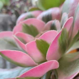 お迎え時は1頭でしたが増えて参りました😺🩷 アエオニウム・ピンクウィッチさん😻🩷 💜🤍💚🧡 ガレージでハンギング中で 外壁塗装の影響を受けていないので 発色が衰えませんでした😺