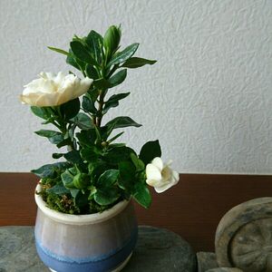 クチナシの花.*✿ 小さな苗を盆栽風に 仕立てました 優しく甘い香りが 広がります。. •*¨*•♬✧
