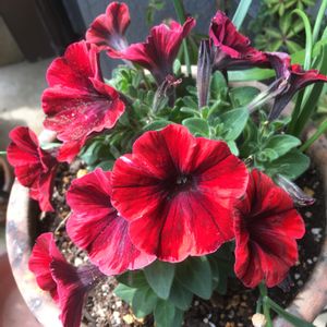 宿根金魚草とスカビオサの寄せ植え。 このところ全ての枝に赤い花と蕾を付けてくれました。❤️❤️ そして今年初めてペチュニアをいくつかお迎えしましたよー。 👋☆〜niconさん。😁 上手く育てられるかしら😅