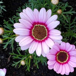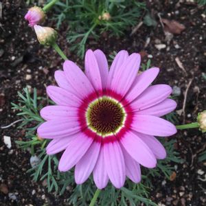 おはようございます☺️ 先月買ったマックスマムさん。 咲き始めました。 サントリーさんの苗はこれで 4つ目かな😁 ボンザマーガレット、 オステオスペルマム キララ、 サフィニアを育ててます。 大きくなるかなあ~~🎵