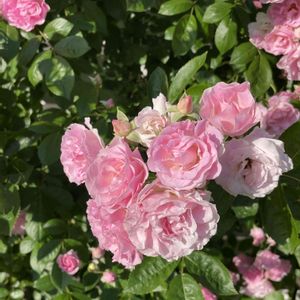 ①ルージュピエールドゥロンサール ②つるサマースノー 半分枝変わりでピンクになってま す。 ③アンジェラ ④ノイバラとつるサマースノ ー こっちは全部真っ白です。 雨が降りそう☔ 今が一番綺麗なのに大丈夫かな?