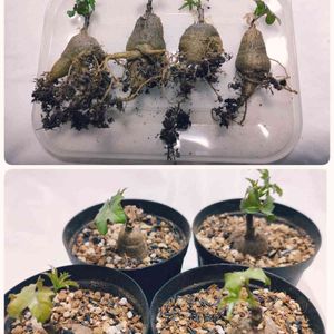 Cussonia natalensis 実生11ヶ月🌱 葉が出始めたので、植え替えると、まん丸のいい塊根してました😁 1年でいい成長したクッソニア。また種蒔いてみようかな🤔