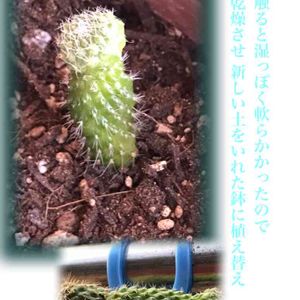 こんばんは☽・:* テキストが見えにくくてごめんなさい。 サボテンを、一部 植え替えました。 触ったら 湿っぽかったので、 陽にあてて乾燥させて、 新しい土を入れた 別の鉢に 植えました。 どうか、無事に 育ちますように。
