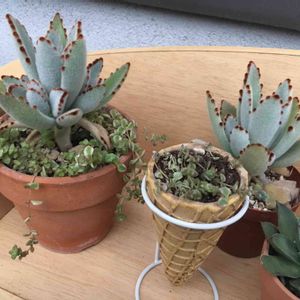最近、暖かくなって天気も良かったので 増えて、大きくなって押し合ってる子や 土がカチカチになっている子を 植え替え&土替え✨ 1回、蒸れで全滅しかけたミッシーちゃんも だいぶ伸びてきて、いくつかコーンにプスプス🌱 これで垂れ下がったら可愛いだろうなぁ💕