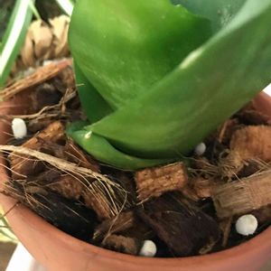 とりあえず、土を払って水苔に植え替え完了🌿🤗 小さい鉢しかなかったからこれで様子見ます😅 ポットから外すとだいぶ根詰まりしてました💦 根からはあまり養分を吸収しないと聞いたけども🤔 葉っぱの上からジャバーっとメネデールもかけたし一晩シンクでオヤスミ〜🌱👀 お花は中心咲かずに枯れてるっぽい…大丈夫かな😵可愛そう😥
