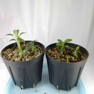 実生〜2ヶ月 パキポディウム·デンシフローラム この種も、あんまり大きくならない🤔 と言うより、サウンデルシーが大きくなりすぎか… 日差しが優しくなる今月末には、外出だしするかな;😗