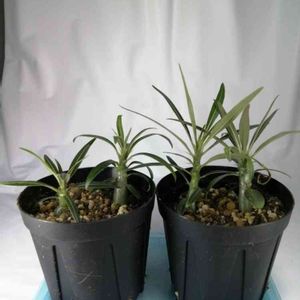 実生〜2ヶ月 パキポディウム・グラキリス すくすく育っていい感じ😊 外出しの2年苗はいまいち成長が見られないけど、その内超すかもなぁ…