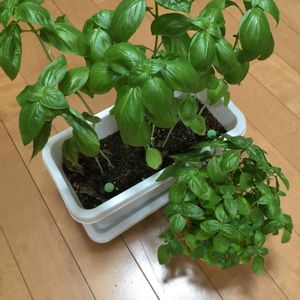 バジルです。前回投稿で伸びどまりかと思ってましたが、肥料を与えたら、まだまだ大きく育ちました!味も美味しそう!😁鉢が小さい方も毎日水切れするほど大きく育ちました。