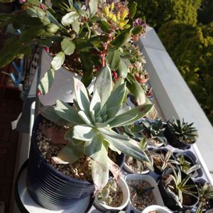 約半年でかなり大きく育ったダドレア仙女盃デス🥰 純白のパウダーがそれはそれは美しく。。。育成はドキドキの連続。。。 雨が降れば急いで取り込み、ウチのイケメン軍団😎(ビルベルギア、ディッキア、ユーフォルビア)にぜっっったい接触しない様に気を使い。。。 箱入り仙女ちゃん💚デス笑