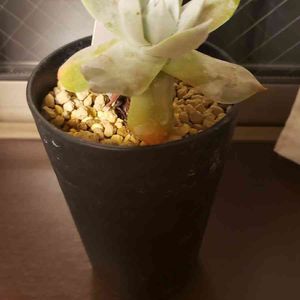 ダドレア属仙女盃 植え替え! 可愛い素焼き鉢、白にするか黒にするか、考え考え白に😊ヌリヌリ まだまだうちのまっちろちゃんには勝てない🤣🤣 寝落ち投稿💧