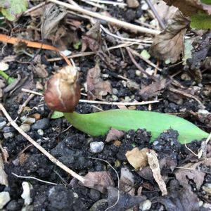 今日も一日お疲れ様でした😊 庭のチューリップ🌷 芽が出て葉っぱもでてきていますが。。 これ上下逆ではありませんよ😂 昨年鉢を整理して土を庭に空けていたのですがチューリップの球根が残っていたみたいです😅 葉っぱが横向いているから何で❓とよく見たら球根が土の上💧でも葉っぱもちゃんとでていて❣️ さすがに花芽はついていませんでしたが😅 写真撮った後土に埋めてあげました😊 たくましさと元気もらい、植物の生命力を 改めて知りました❣️