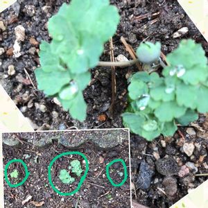 雨が止み庭のパトロール🎶 オダマキが芽を出していました🌱 昨日一番大きな芽はみつけたのですが 今日よくみたら1cmくらいの小ちゃな芽🌱 知らずに踏み付けてしまいそうで花壇に 移し替えました🎶 踏み付けてしまわずよかった〜😂💓