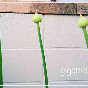 年末に植え付けてしばらくは葉ばかり繁っていたアリウムギガンチューム。 茎がニュッと伸びて蕾が付きました(*^^*)