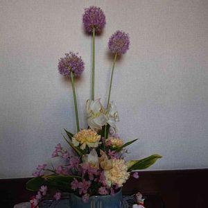 一週間前に生けたギガンジューム、最初はつぼみだったのが満開になってボリュームがでました。クジャクソウもいっぱい咲きました。