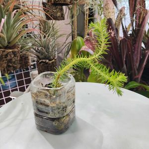 今日のディオドノプシス エリナセア💛 上のモシャモシャはフペルジア スクアローサ💚 フペルジアはうちに来ると根本から腐り始めて駄目になってしまうのですが、これは先端の緑々してた房状部分をカットし生水苔に植え込んでおいたもの。 水槽に入れたのが良かったのか?高湿度が好きなんだね🌿🌿🌿