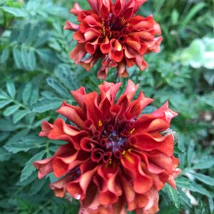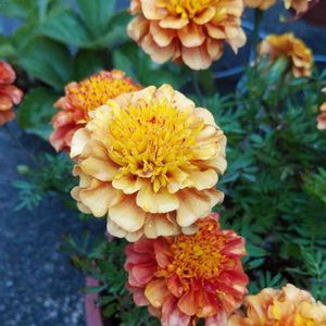 こんにちは*ˊᵕˋ* 今日も1日を通して気持ちの良い晴れ☀️の天気でした~ ✩(*˘︶˘*).:* 明日の夜から、また天気が崩れる予報…さらにまた台風が発生しそうとの予報… せっかく朝晩涼しくなって来たおかげで花もたくさん咲き始めたのに…😔 今日のpicは、フレンチマリーゴールド ‘ ストロベリーブロンド’。 去年は、初めて見たのでネットで購入したんですが、今年は、近くの園芸店で見かけて購入しました😀 どうもこの種は、夏はアンティークなブロンド色にはならず、秋になってからブロンズ色になるのでは無いかと… 去年も今年も夏は普通の黄色でしたが、涼しくなり始めた先週くらいから花もたくさん咲き始めたし、咲いた花がブロンズがかって来ました(∩ˊᵕˋ∩)・* 赤に近い色もあれば、黄色に近い色もありますが、ほとんどがアンティークなブロンズ色になってます( * ॑꒳ ॑* )✨ この場所は、2階リビングの窓辺のフラワーBOXの真ん中…。8月5日に載せた外から撮影したpicの真ん中の花です。その時は黄色でしたが、今は、アンティークなブロンズ色になっているんです😊 *実際は、picよりもアンティークな色になってます*ˊᵕˋ*