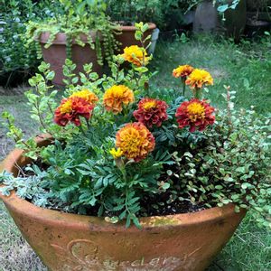様々な植物のコンパニオンプランツになるマリーゴールド。 今年はちょっとアンティークカラーで☺️☘️