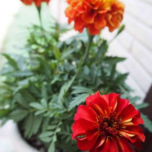 こんにちは☀️ タネからのマリーゴールドストロベリーブロンドが咲きました🌼 咲き始めは真っ赤 咲き進むとだんだん銅色になります。 ちょっと多すぎたので、ご近所さんにお裾分けしたのですが 「こんな赤いのもあるんだ!」 と驚かれました♪(*´ω`*) 赤さでいえば、多分ファイヤーボールのほうが赤いのかな? でも私は退色のキレイさを期待して、こっちにしてみたの。 期待以上の色変わりで嬉しいです♪😊✌ タネから育てた子ってホントかわいい😌💓 You know my soul is flyin' like a fireball