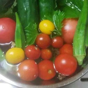 『あやめっ娘』と『もみじスティック』収穫🎵 あやめっ娘はふっくら感が足りない💦 でもそれより...もみじスティックがまさかのまん丸!それにタコか宇宙人かって根っこが🐙👽🤣 味は甘くて美味しかったです😋❣️ お漬け物になりました🎵明日には食べられるかな😋
