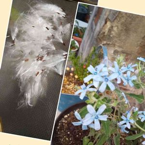 春に採れたオキシペタラムの種、乾燥していたので冷蔵庫にしまって春に撒こう🎵 オクラみたいなサヤから30個以上の タンポポの種みたいなのが採れました〰️😃