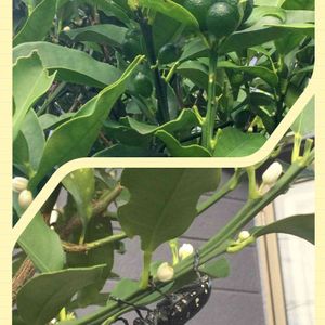 💕✨金柑の花と実✨💕 おはよう御座います🌨 此方、どんよりとし、雨が降りそうな朝です。 金柑に実とお花が同居してます。 そして、カミキリムシが居ました。 この虫は害虫かもね。あまり好きではありません。