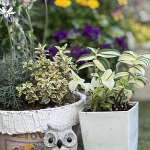 🏷️フクロウ祭 🏷️幸せを呼ぶフクロウ祭り 🏷️2のつく日は斑入りの日 🏷️斑入り見つけ隊♪ 参加します*.(๓´͈ ˘ `͈๓).* ➀トラディスカンティアお迎えしました😅 ➁ちょっと葉っぱが違うトラディスカンティアも連れて来ました🥹 ➂キヌサヤ初収穫しました🫛