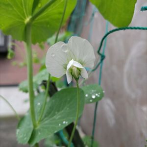 〈地道投稿〉おはようございます☀「キヌサヤ」寒暖激しくやっと開花しました。朝露に濡れた花🤩好きです。実は食べますよ🤤