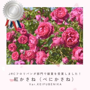 . 耐暑性、開花性にすぐれた『紅かさね』 2025年 JRCフロリバンダ部門で銀賞を受賞しました! 小さめの葉は葉軸が細くたおやかで、 花のあでやかさを際立たせます。 花つきがとても良いため、新苗から栽培する時は 秋までの摘蕾(つぼみをとること)をこまめにすると 株全体が充実してふんわりと丸くまとまる 素晴らしい株になります。 2024年 新品種 2025年 JRC FL部門銀賞 受賞