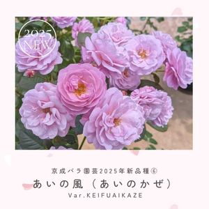 京成バラ園芸2025新品種⑥ さわやかな風が幸運を運ぶ - あいの風(あいのかぜ) - 2025年新品種のあいの風(あいのかぜ)。 ふんわりとしたドーム状にしげるシュラブローズです。 やわらかな香りと花のたたずまいのバランスが◎。 品種名の『あいの風』とは、 北陸の日本海に面した地域で春から夏にかけて吹く 北東のさわやかな風のこと。 万葉集の時代から「幸せを呼ぶ風」として親しまれています。 . . ・*:..。o○゚・*:..。o○゚・*:..。o○゚ 【あいの風(あいのかぜ)】 系統:シュラブローズ 花色:ラベンダーピンク 花径:8cm 樹高:1m 半剣弁平咲き/半横張り木立性 ・*:..。o○゚・*:..。o○゚・*:..。o○゚ .