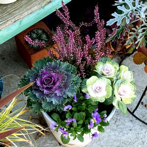 エリカをもらったので、買ってあった葉牡丹とビオラで寄せ植えに。