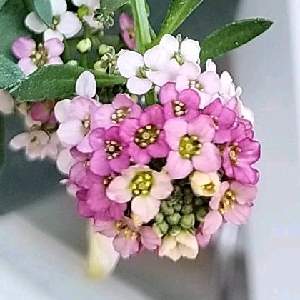 今日、2週間程前にお迎えしていた待機苗と挿し芽🌱や既存のリーフをリメイク等で久しぶりに寄せ植えしました☺️ ① マルチカラーなアリッサムをメインに100均フラワースタンドバスケットに寄せ植えしました✨ ②③ このおニュウの鉢に仮置きしただけで記念撮影✨😅 アリッサムも入れてみたかったけどポット苗では入らなかった~💦 実際は去年の秋に厄介な蔓で作った篭🧺に寄せ植えしました😅 ④ ミスマッチ🌻🏔️な景色をもう1枚🙏💦 ⑤ 昨日の17:07の夕やけ空に浮かぶ三日月🌛をもう1枚🙏💦 ぴ〰️すたまさんの 🏷️「半分そら」