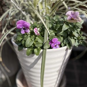 12月に作ったフリルパンジーの寄植えですが、最近やっと花数が増えて見られる状態になってきました❣️ 寒色系の花とリーフの組み合わせなので、ちょっと渋め、可愛い狙いではありません😆