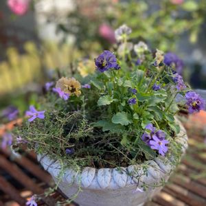 ⚘𓈒𖧷 ⁺.𖡼.𖤣𖥧⚘⚮̈ ʾʾ𖡼.𖤣𖥧𖡼.𖤣𖥧 毎年お迎えするレディは、ガーデンテーブルの真ん中に𓂃 𓈒𓏸𑁍 小さな小さなお花は、ジャメスブリテニア💜 お花の周りに妖精が舞っているみたい🧚 ⚘𓈒𖧷 ⁺.𖡼.𖤣𖥧⚘⚮̈ ʾʾ𖡼.𖤣𖥧𖡼.𖤣𖥧