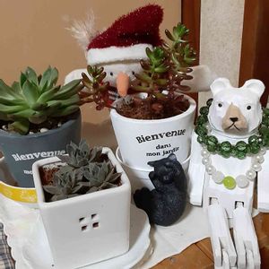 東北の冬の準備の一つの鉢減らし💦 新築のオシャレな家に住む多肉にハマりかけの友達に、空の鉢持って来て〜って言ったら…なんて可愛い鉢なの〜💕 多肉を入れたらさらに可愛い💕 寄せ植えのセンスがイマイチですが…😅 喜んでくれて嬉しい🥰