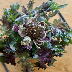 赤紫蘇ジュースをつくる時、赤紫蘇の穂先を残しておく ジニアはドライになっても捨てられず そんなこんなで2つを合わせてみたくなりました